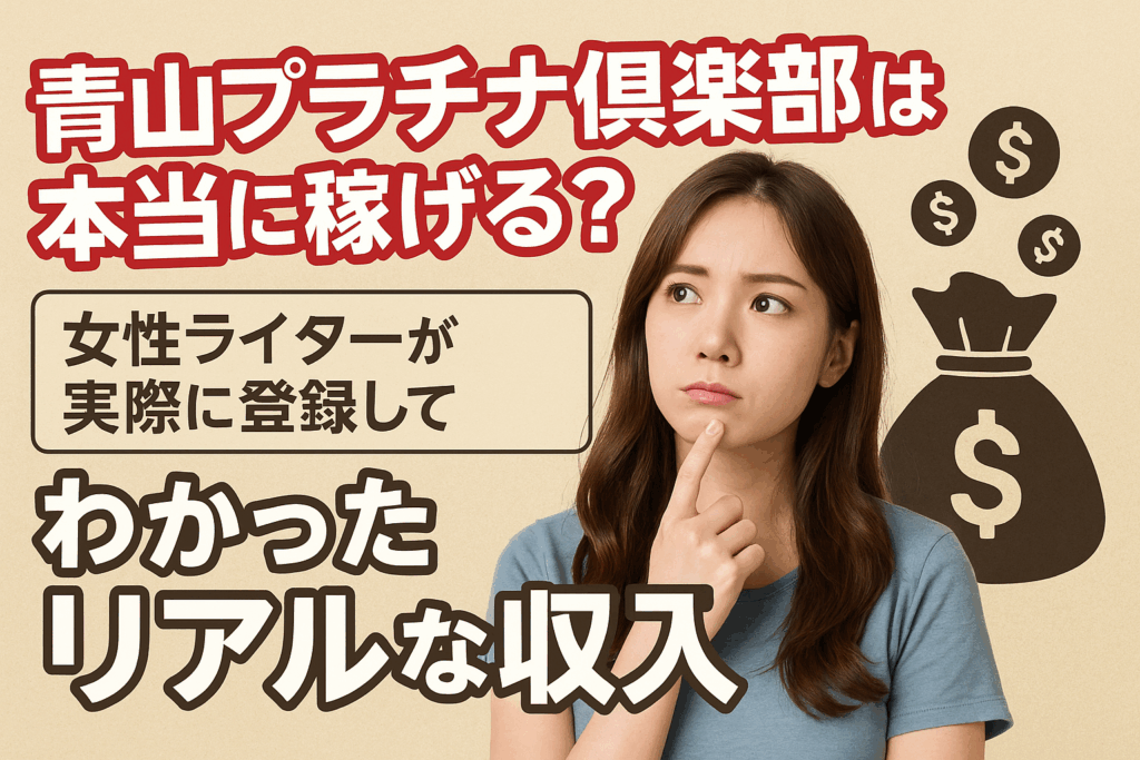 青山プラチナ倶楽部は本当に稼げる?女性ライターが実際に登録してわかったリアルな収入