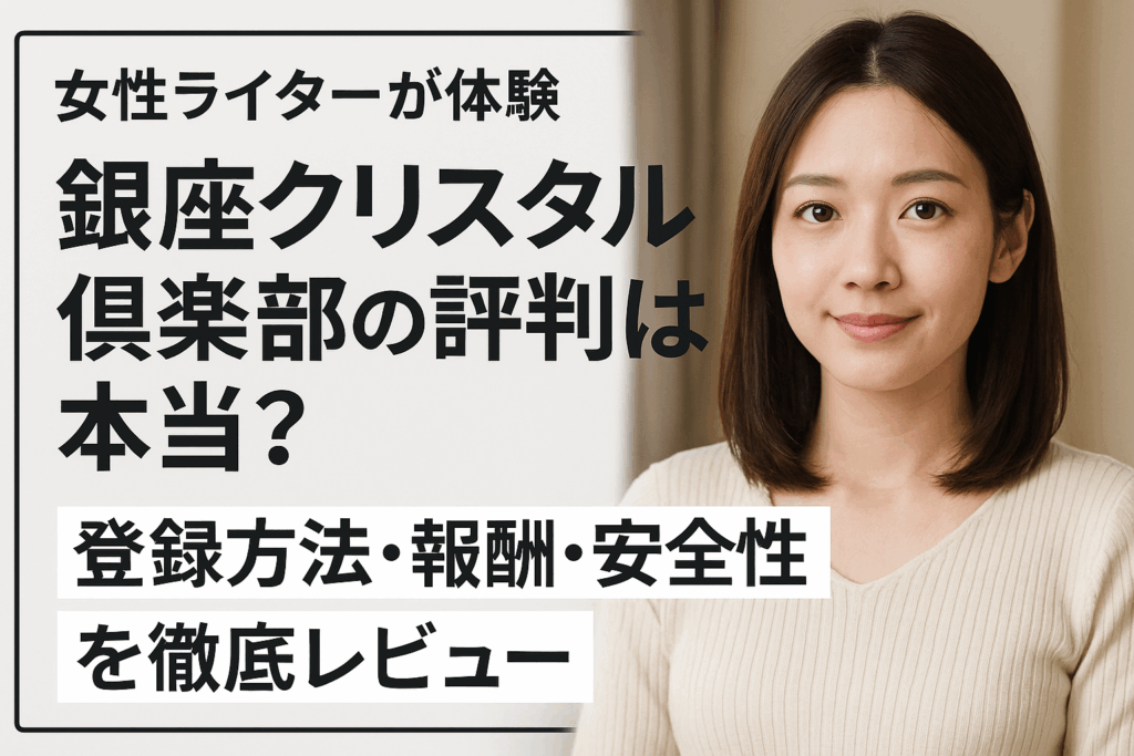 【女性ライターが体験】銀座クリスタル倶楽部の評判は本当?|登録方法・報酬・安全性を徹底レビュー